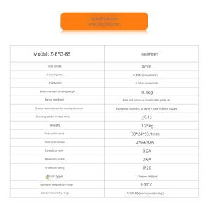 Answer: The strokes of Z-EFG-8S and Z-EFG-12 are not adjustable. The Z-EFG-20 is a pulse-type gripper, with 200 pulses corresponding to a 20mm stroke and 1 pulse corresponding to 0.1mm stroke.