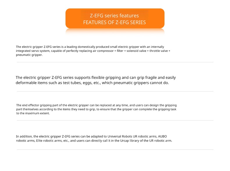 Answer: After professional testing, the Z-EFG-8S can work continuously at an ambient temperature of 30 degrees, and the surface temperature of the gripper will not exceed 50 degrees.